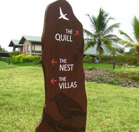 標識的設計最重要的是對信息要素的傳達。作為一種視覺信息系統,要從信息的表達方式,傳達方式和接受效率3個角度進行設計考慮。從設計的角度來看,標識的易識是首要的,指的是標識的圖形和文字在顏色、大小方面對所需傳達距離、合理的觀看角度。能兼顧到白天和夜晚的視覺效果、標識的完整被接受、信息編排的方式能科學的處理多元信息,并顧及到色彩和材料對傳達信息的影響。