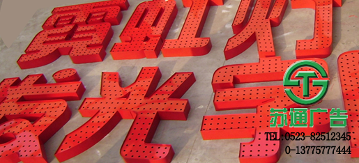 多用于戶外,視覺距離在20m以上。制作工藝通常尺寸在1.5m以下的發光字箱體建議使用0.8mm厚冷軋板,點陣發光字箱體底面使用1mm厚冷軋板。尺寸在1.5m以上的發光字箱體使用1.2mm厚冷軋板,箱體底面使用1.5mm厚冷軋板。底面與焊接完成之后進行噴漆或烤漆處理,高度一般為10-12mm。點陣發光字又叫穿孔字、燈屏字、外漏燈字。點陣發光字是采用鐵皮烤漆字打孔后制作成型。點陣發光字光源是當前發光字形式的主流,主要因為LED性冷光源12伏低壓電,點陣發光字優點就是節能、耐久、維修率極低,適用范圍廣。