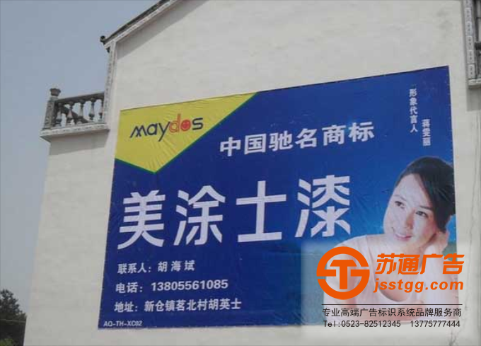 【公司簡介】:江蘇蘇通廣告主要經營墻體廣告,墻體噴繪,墻體手繪等多種種類的墻體廣告制作,江蘇范圍內可送貨上門,幫您鋪設,大大節省了您寶貴的時間, 蘇通廣告華東地區權威的廣告系統整合服務商,專業值得信賴。詳情請咨詢:13775777444 電話:0523-82512345。